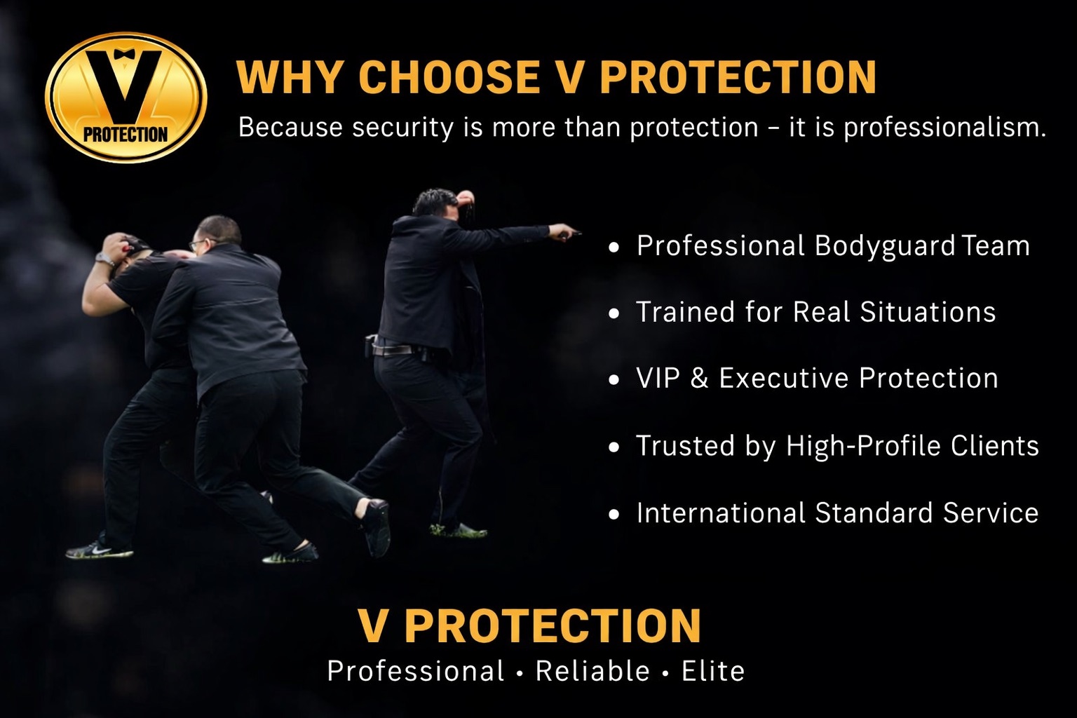 ที่ V Protection (Thailand) เราไม่ได้มีแค่ยามหรือการ์ด แต่เรามีทีมรักษาความปลอดภัยมืออาชีพ ตั้งแต่ รปภ. งานอาคาร ไปจนถึงบอดี้การ์ดระดับ VIP ที่ผ่านการฝึกมาตรฐานสากล เพื่อให้คุณอุ่นใจในทุกสถานการณ์
