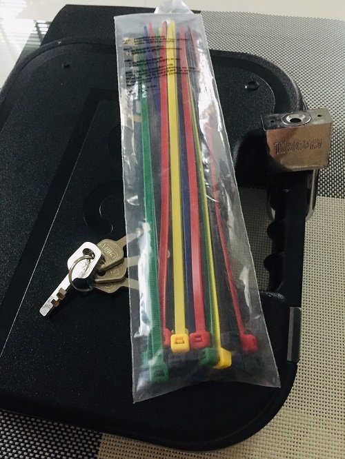 เตรียมอุปกรณ์ในการล้อค กล่องปืน เช่น แม่กุญแจ และสายล้อคพลาสติก อีกชั้นหนึ่งตามกฎของการท่าอากาศยาน